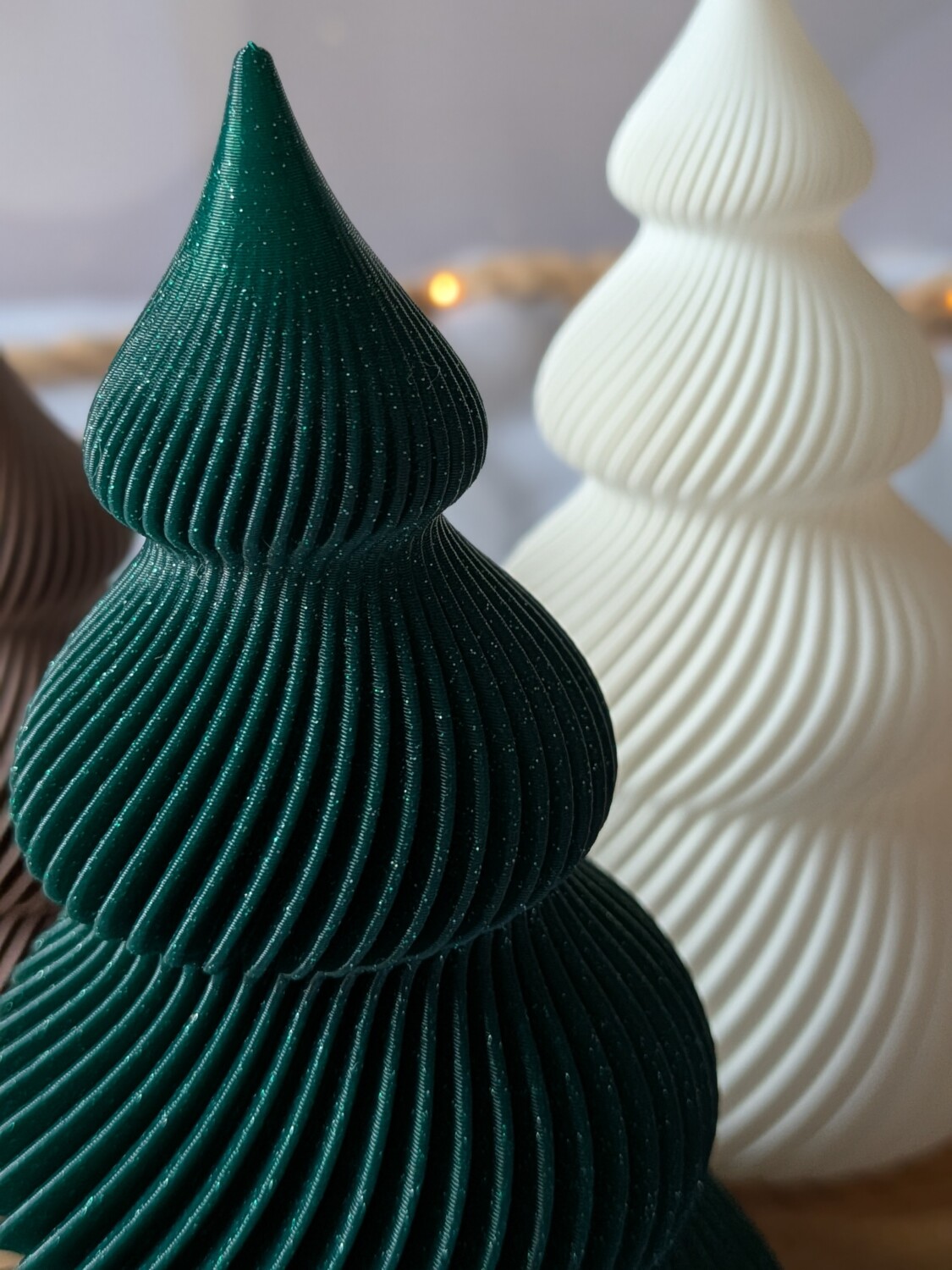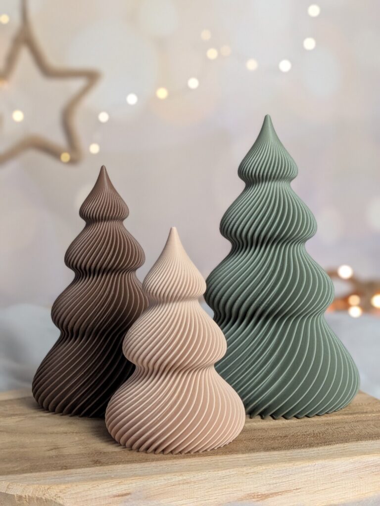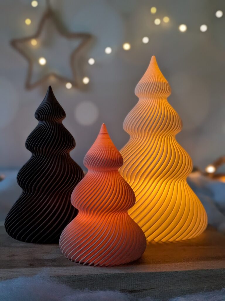 Deze kerstboompjes zijn door mij zelf ontworpen en worden 3D-geprint in kleine oplage bij mij thuis op bestelling. Je kunt er een LED-theelichtje onder plaatsen waardoor ze een warme, sfeervolle gloed geven. Combineer kleuren en maten en laat het passen bij jouw interieur.